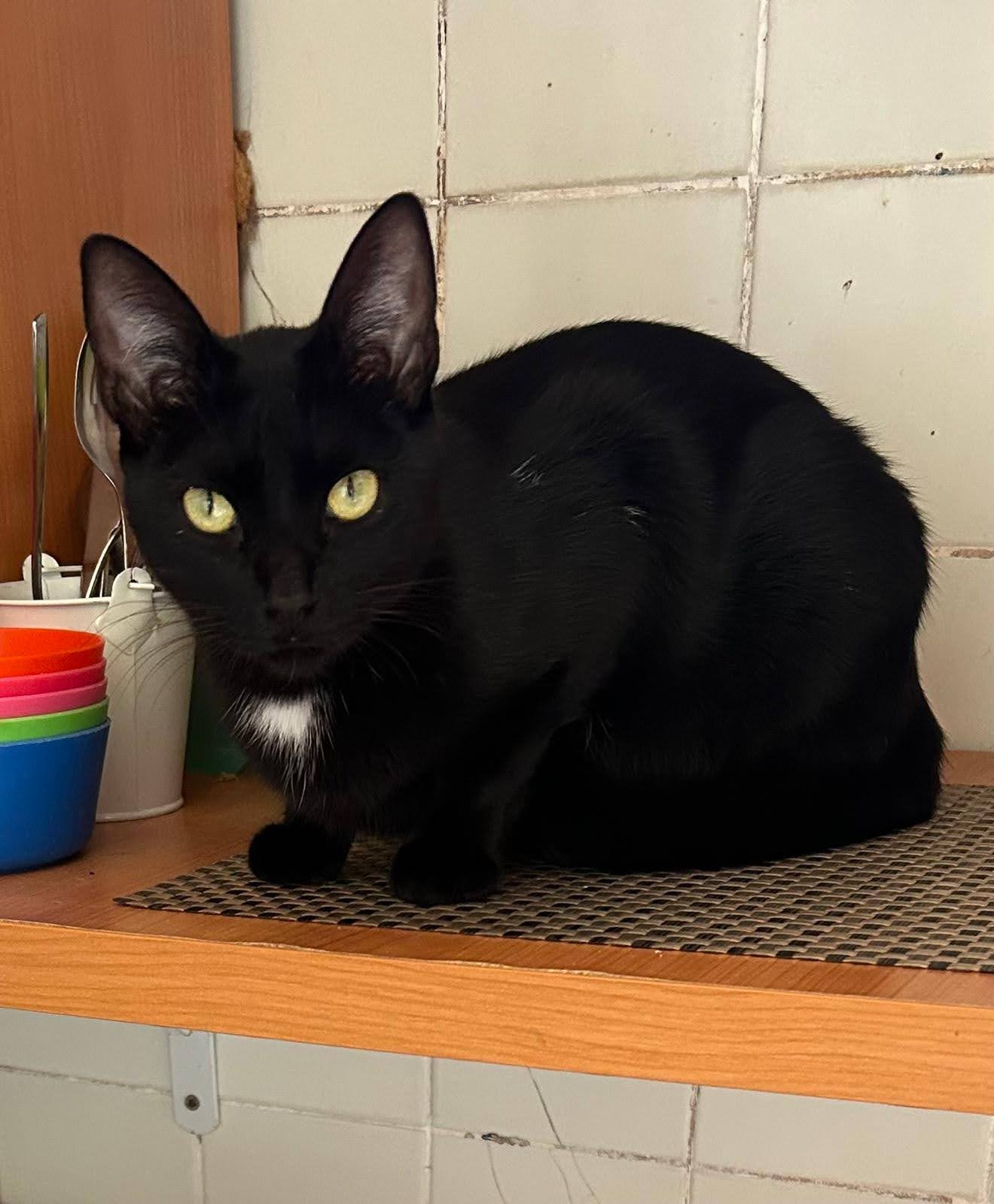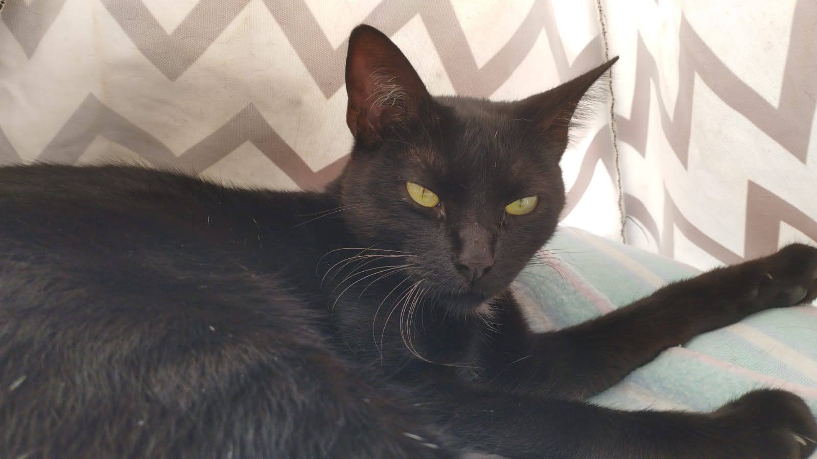 Sol es una gatita negra preciosa y muy especial que, pese a haber tenido un comienzo difícil, sigue siendo puro amor. Fue rescatada después de ser abandonada en la calle, y aunque tuvo dos intentos de adopción, ninguno fue el adecuado para ella. Aun así, Sol nunca ha perdido su dulzura ni sus ganas de querer y ser querida.